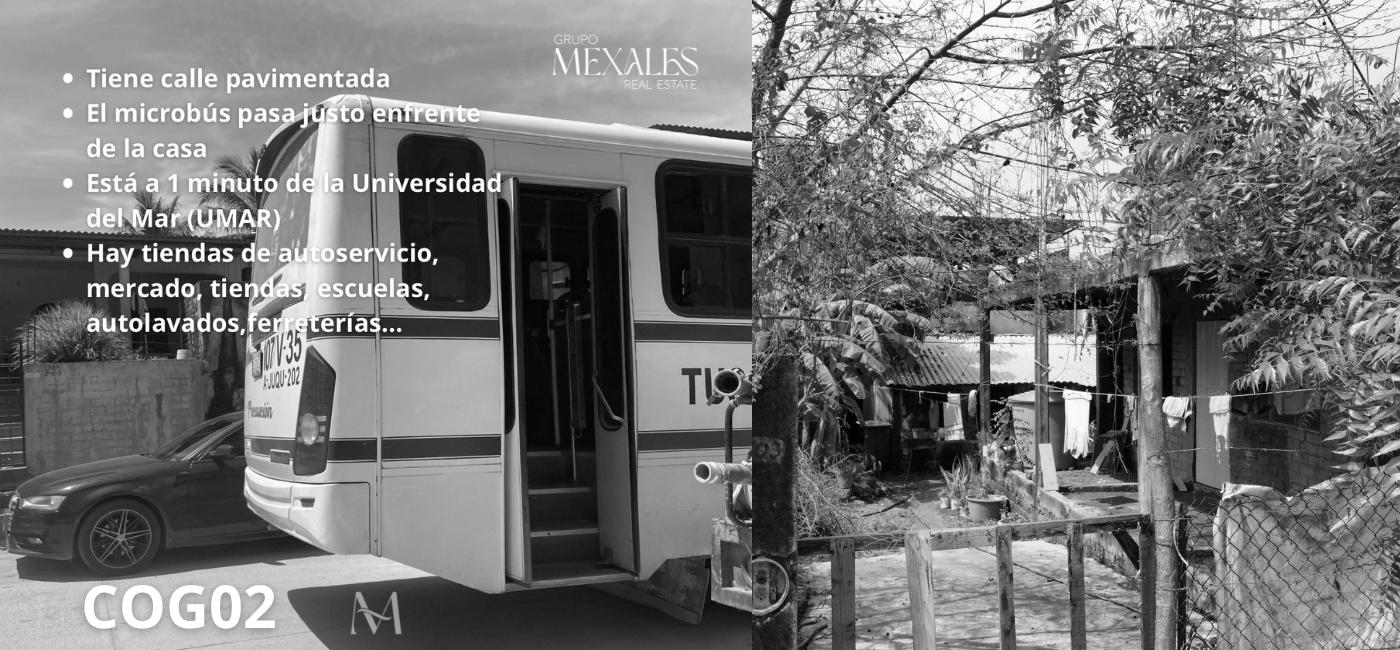 Esta propiedad se encuentra en una de las colonias cercanas al centro de Puerto Escondido. Esta casa tiene dos construcciones. Al entrar a la propiedad, del lado derecho está una construcción en obra negra, ideal para remodelar o demoler y construir algo desde cero. En la parte trasera ya hay una casita sencilla, con los servicios activos de agua y electricidad.