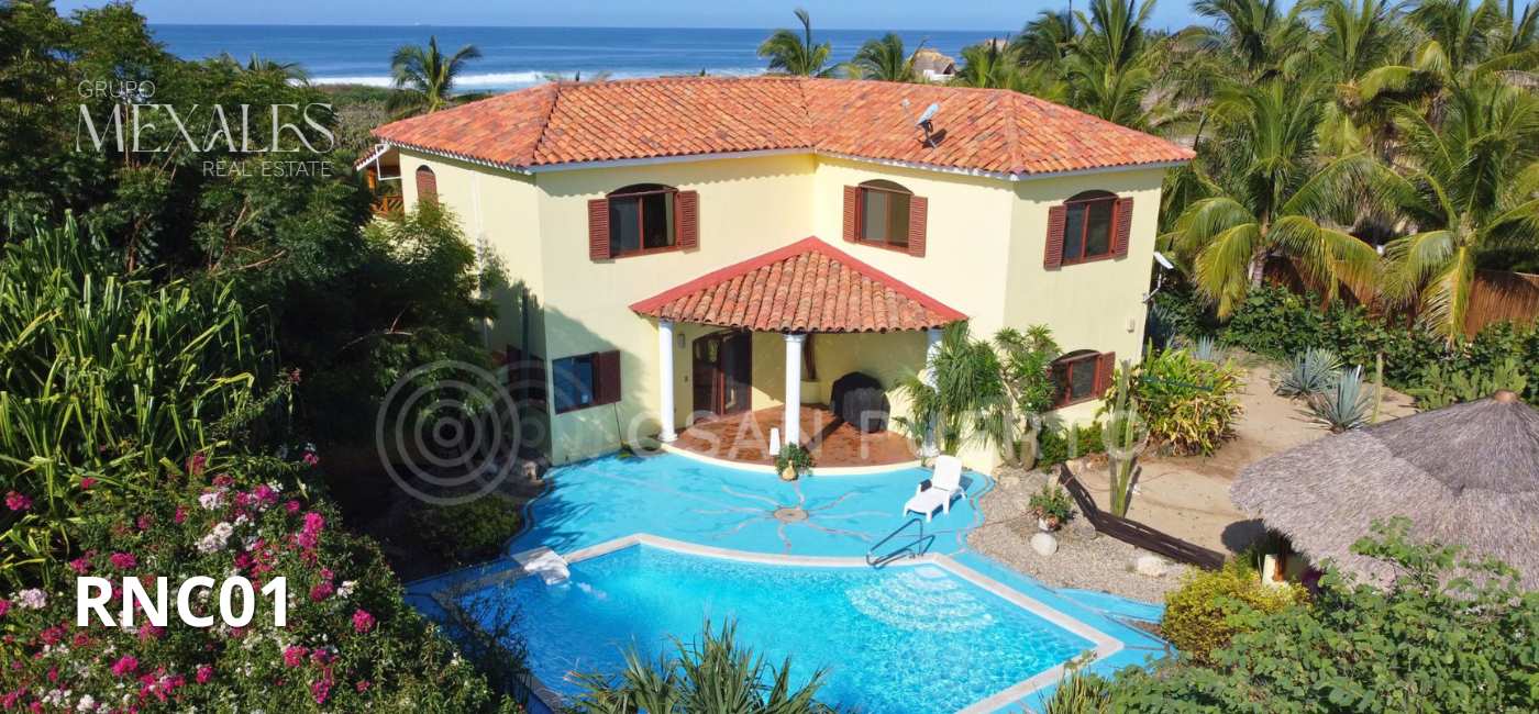 Como parte de las casas en venta en Puerto Escondido, esta lujosa villa de 2 niveles se encuentra a 150 metros de la costa en la comunidad segura de Rancho Neptuno, a solo 30 minutos del aeropuerto de Puerto Escondido.